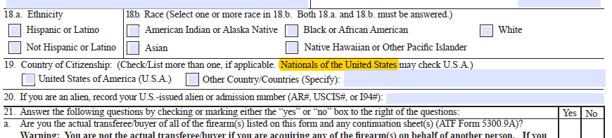 As defined by the INA, all U.S. citizens are U.S. nationals, but only a relatively small number of persons acquire U.S. nationality without becoming U.S. citizens. Section 101(a)(21) of the INA defines the term “national” as “a person owing permanent allegiance to a state.” Section 101(a)(22) of the INA provides that the term “national of the United States” includes all U.S. citizens as well as persons who, though not citizens of the United States, owe permanent allegiance to the United States (non-citizen nationals).